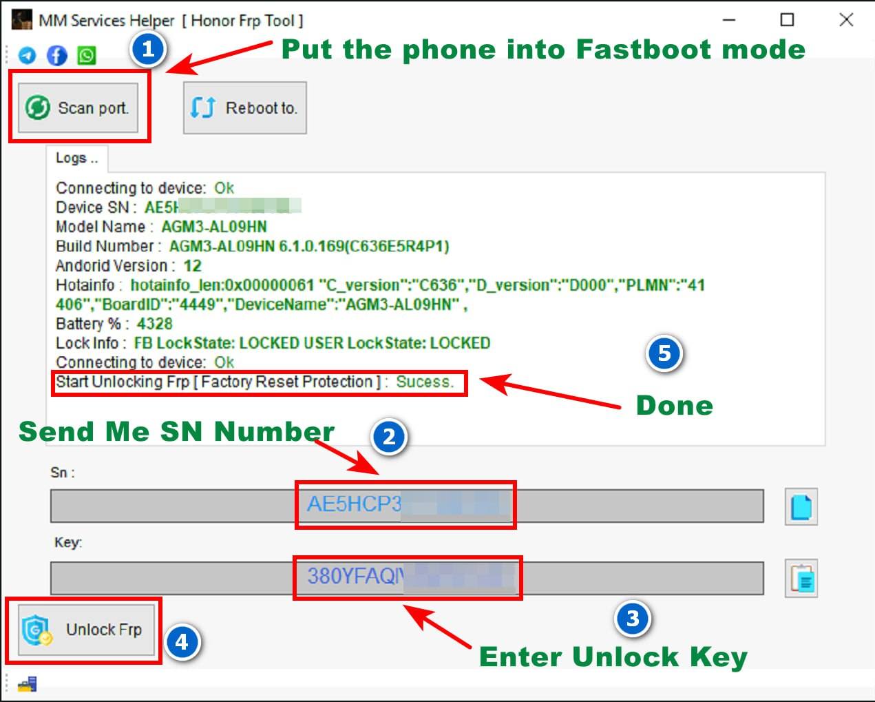 - Put the command like this format. i.e. fastboot oem frp-unlock code or i.e (fastboot oem frp-unlock 2H8JVXXXXX6TF6K).